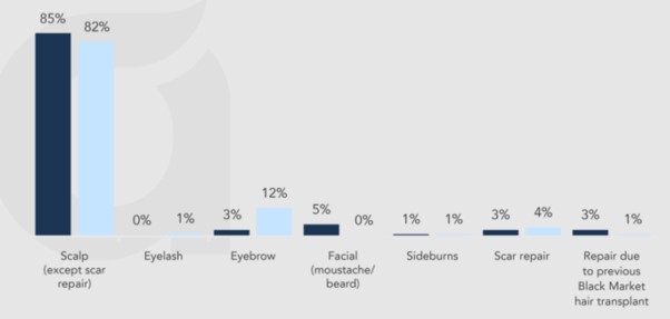 Hair transplant makes up to 5% of all procedures